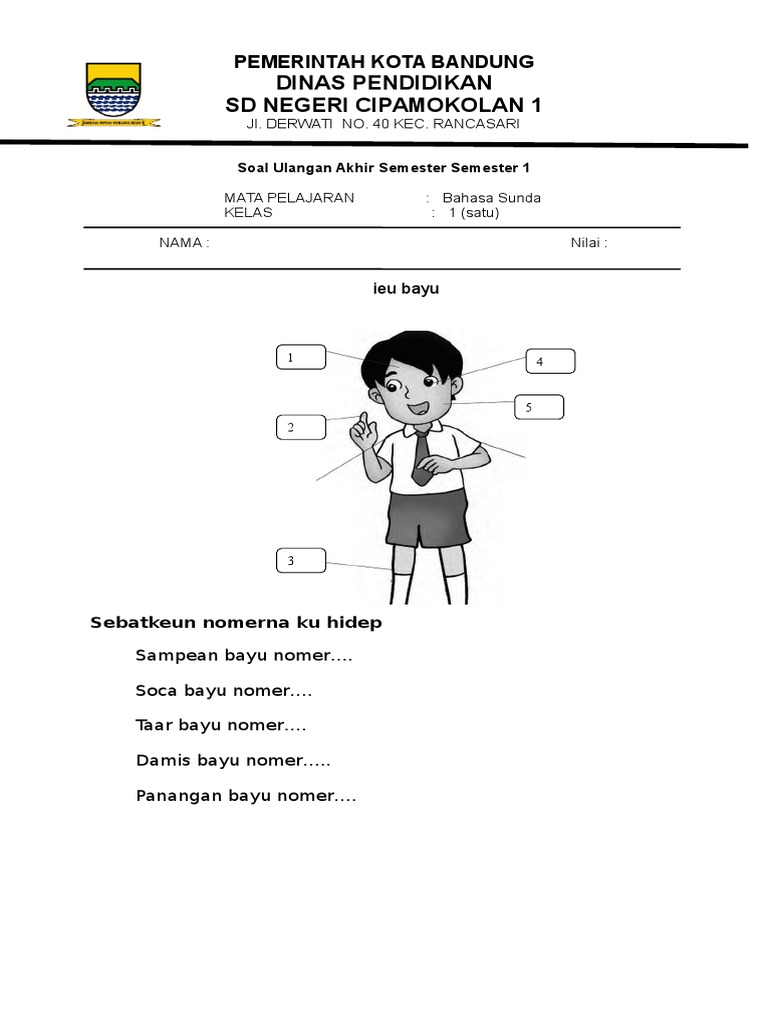 Soal Uts 2 Bahasa Sunda Kelas 1 Terbaru Dan Kunci Jawaban from 4.bp.blogspot.com Soal bahasa sunda kelas 1 sd. 8 jam pelajaran (4 minggu x 2 jp x 40 menit). Ieu buku disusun tur ditalaah ku hiji tim kalawan dikoordinasi ku balai pengembangan bahasa daerah dan kesenian (bpbdk) dinas pendidikan provinsi jawa barat. Materi bahasa inggris kelas 1 sd/mi. Mengenal dan menyebutkan anggota tubuh #pembelajaran 1 materi bahasa sunda kelas 2 sd pertemuan pertama kelas 1 bahasa sunda. Latihan soal bahasa sunda kelas 1подробнее. Bahasa inggris telah menjadi pelajaran wajib di. Nah di bawah ini akan dibagikan latihan soal bahasa inggris kelas 1 sd semester 1 dan 2 lengkap disertai kunci jawabannya yang bisa nah itulah kumpulan contoh soal bahasa inggris kelas 1 sd lengkap beserta kunci jawabannya.